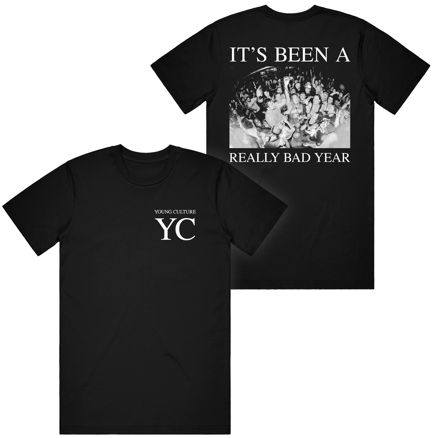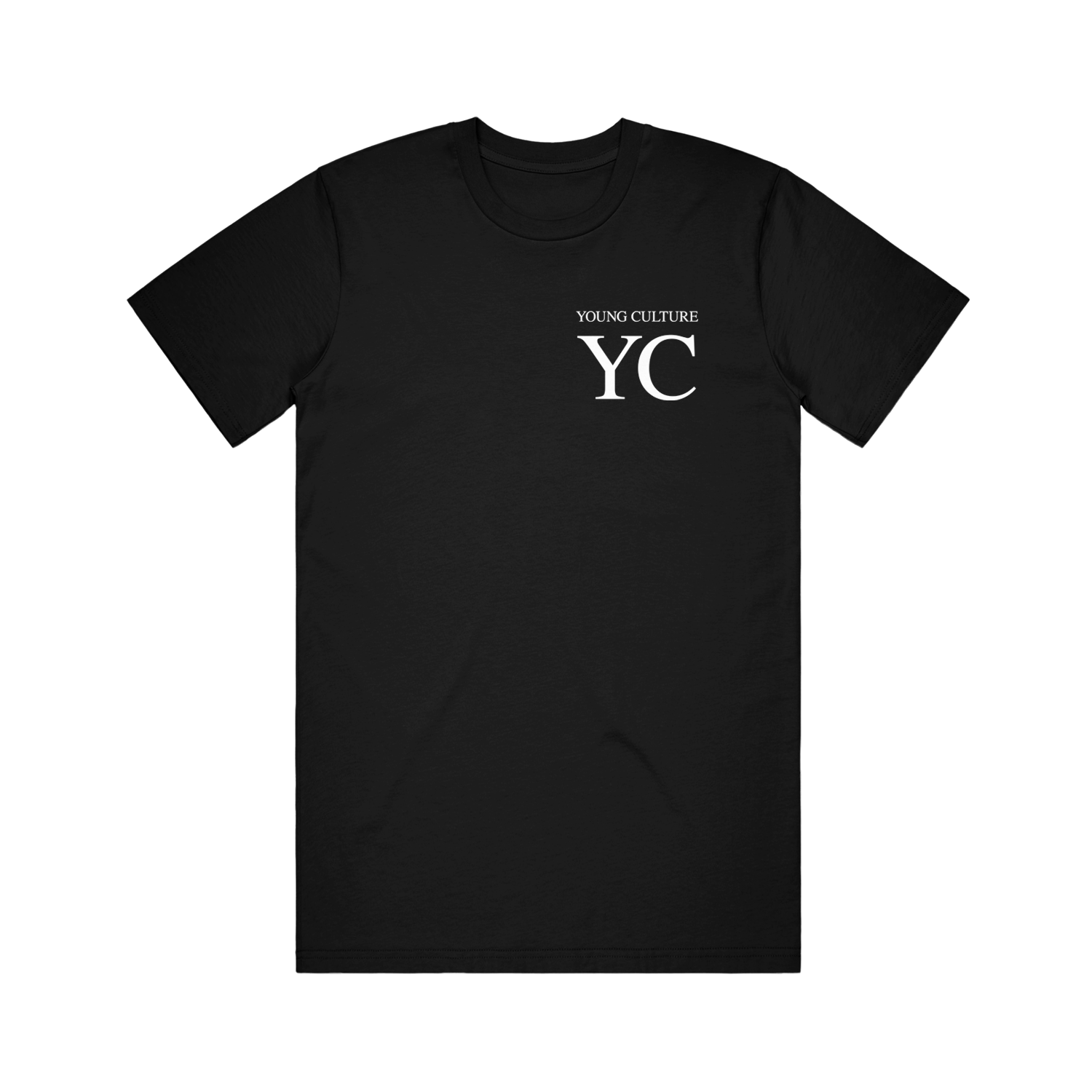 100% cotton Deep Black tee with water-based eco-friendly screen print design.