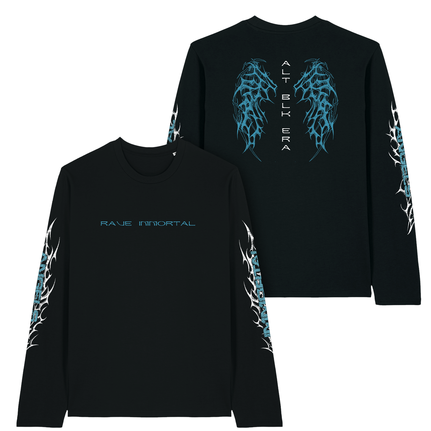 100% organic cotton Stanley/Stella Black longsleeve tee with water-based eco-friendly print.